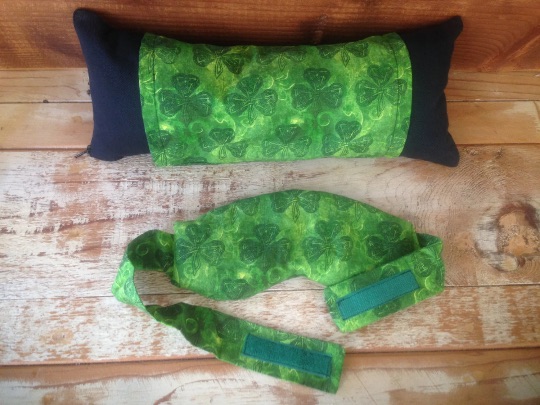 The eye mask is filled with lavender and jasmine rice to help you relax and has Velcro for adjustment on your head. Both of these are great for travel.