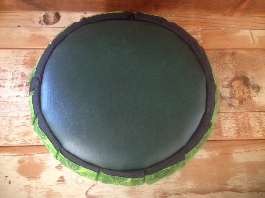 The bottom of the Zafu is made of a green vinyl making it easier to clean when using on the studio floor and to keep you from sliding around.
