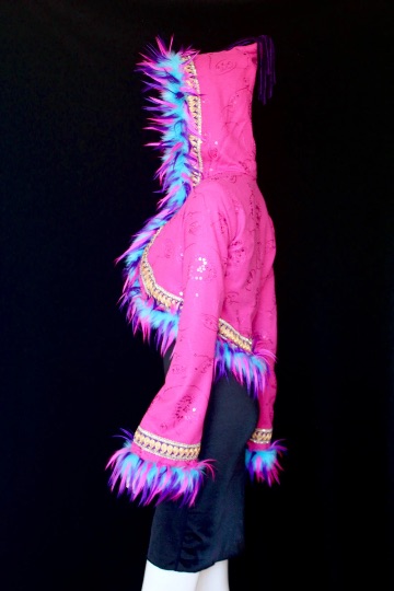 Pink Fur Pixie Bolero Jacket, Teal, Purpe, Raves, Party